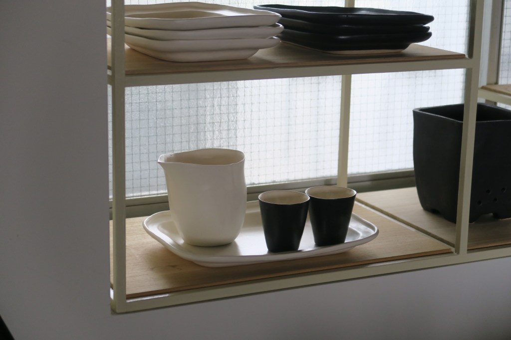 白い器、黒い器、黒と白を掛け分けた茶杯や蓋碗など