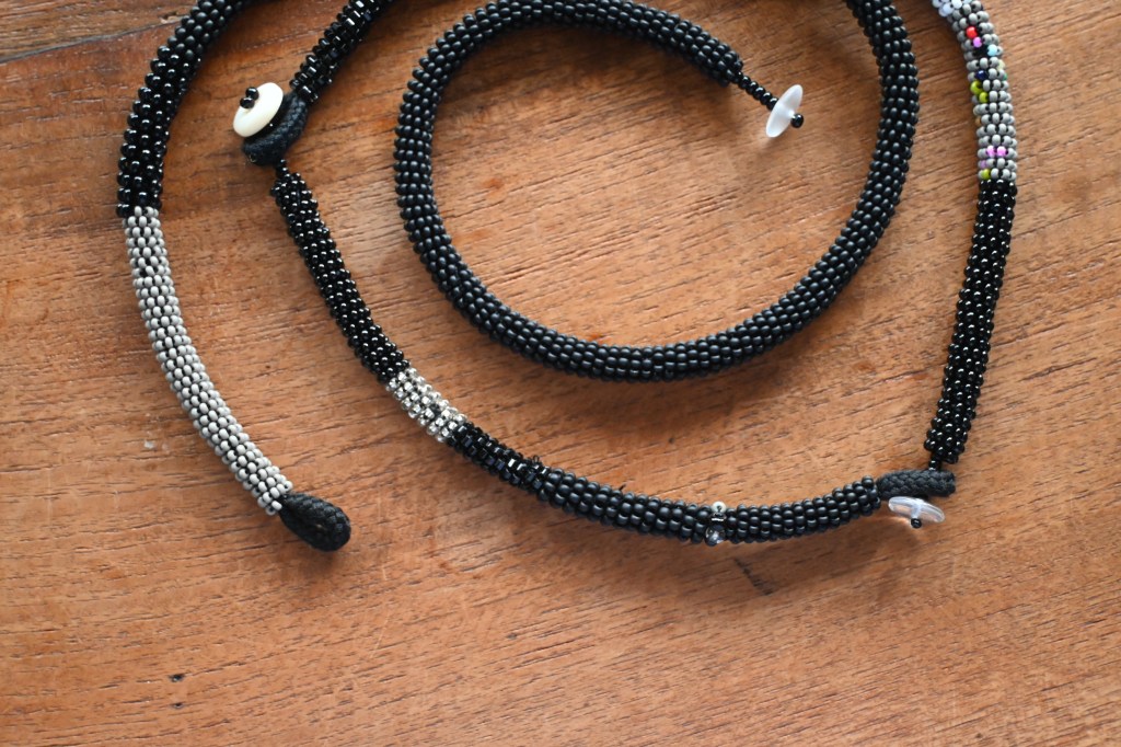 チェコのガラスビーズを使い、shinoさんがひとつひとつ作られたチョーカーやブレスレットが