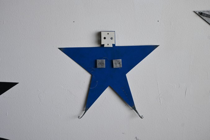 壁にスチール製の画鋲を打ち、そこに強力マグネットを取り付け