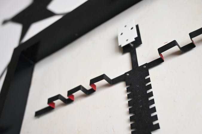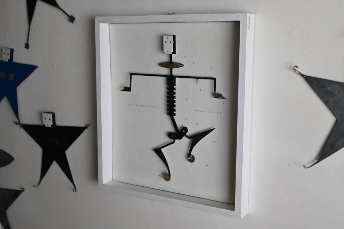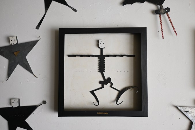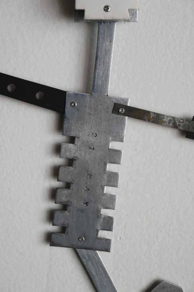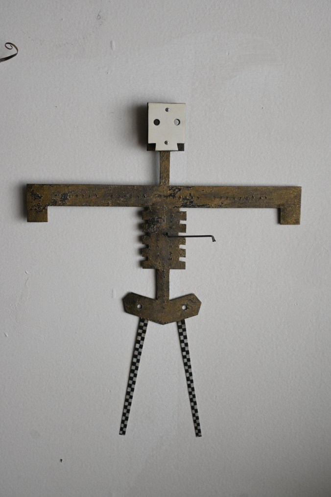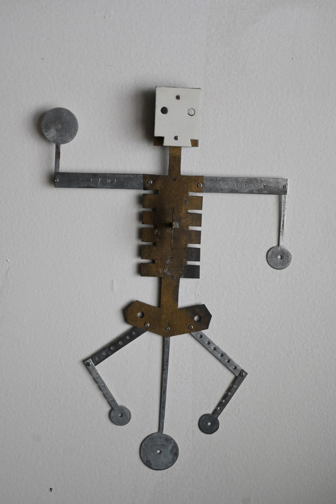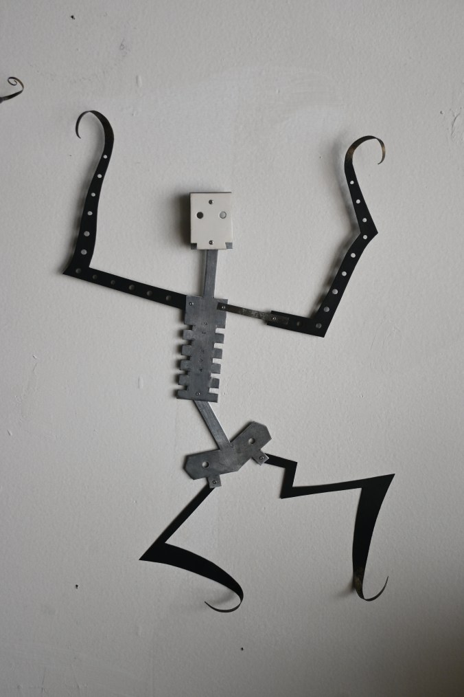 ブリキのガイコツ人形を固定しています。
