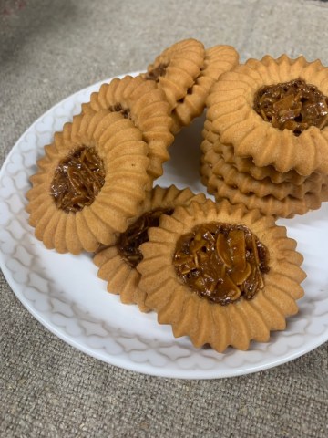 ロミアスは真ん中にアーモンドキャラメルがあるクッキーで