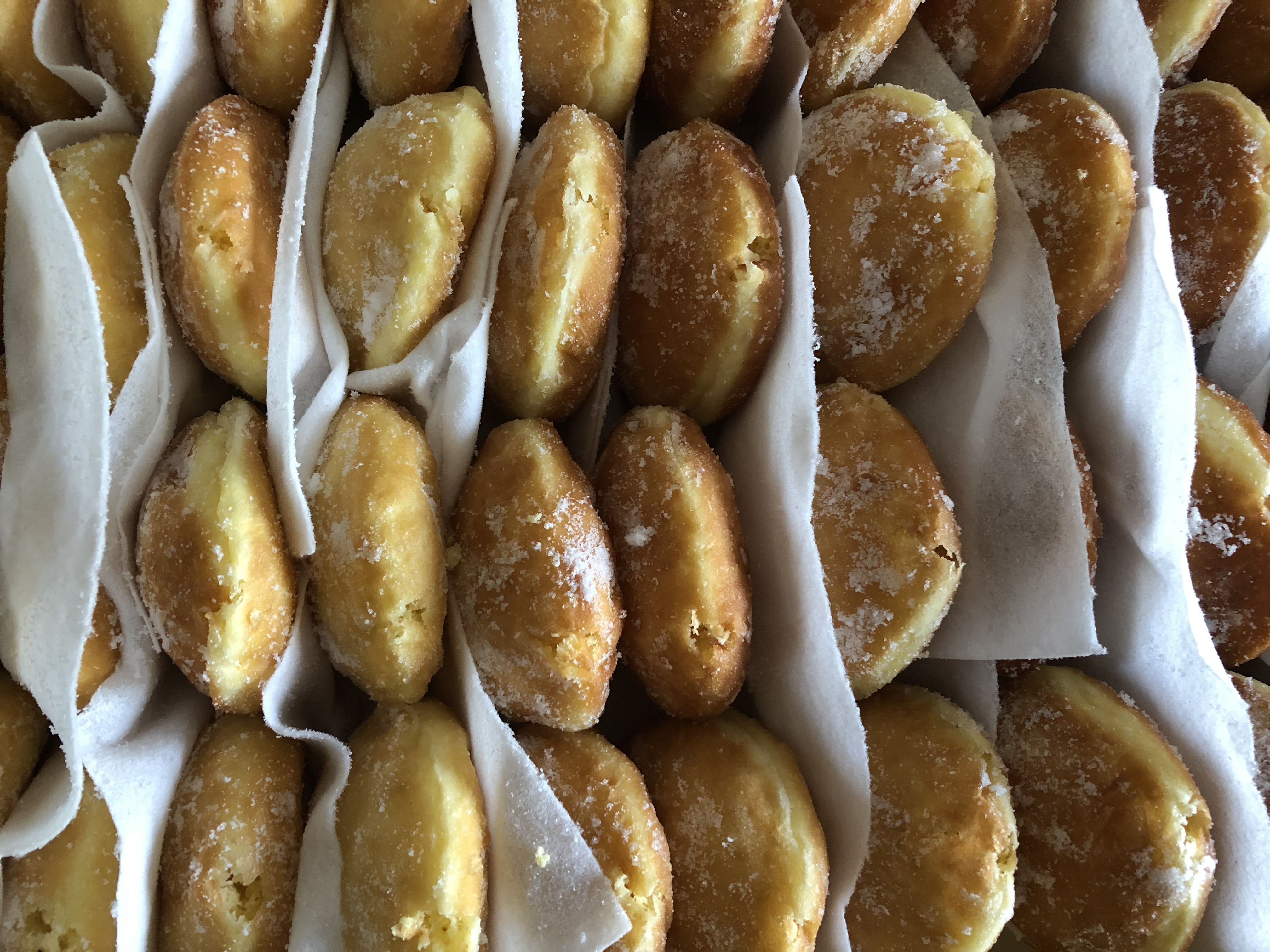 ドーナツはカスタードクリームとラズベリージャムどちらも入ったドーナツです。