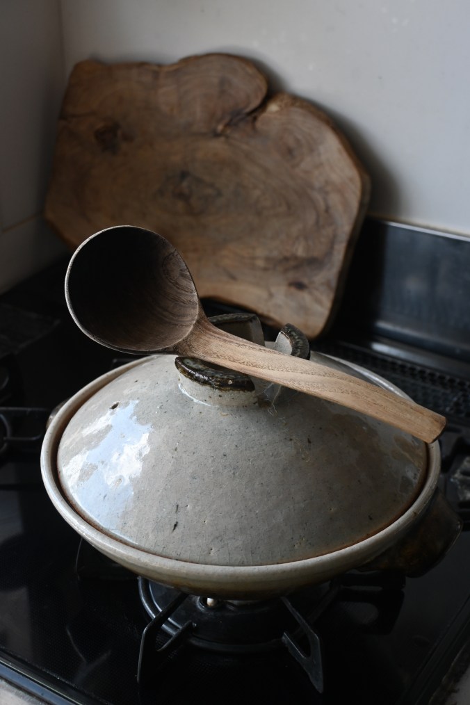 こちらはわたしが使っている土鍋とおたま
